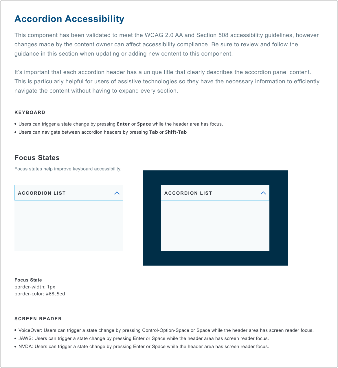 Accessibility wasn’t an afterthought—it was baked into the foundation of our design system from day one. Our team prioritized building tokens, components, and patterns that met WCAG 2.1 AA standards and supported users across a wide range of abilities.